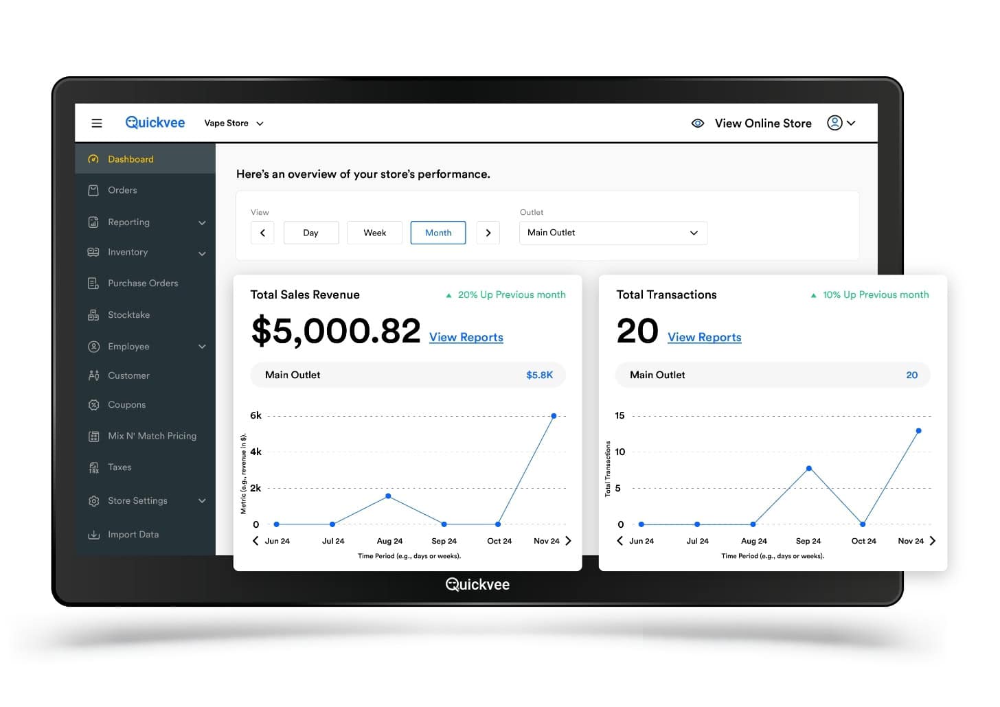 Quickvee POS is an all-in-one point-of-sale system designed for smoke shops, allowing businesses to manage in-store sales, online orders, inventory, and customer loyalty programs efficiently.