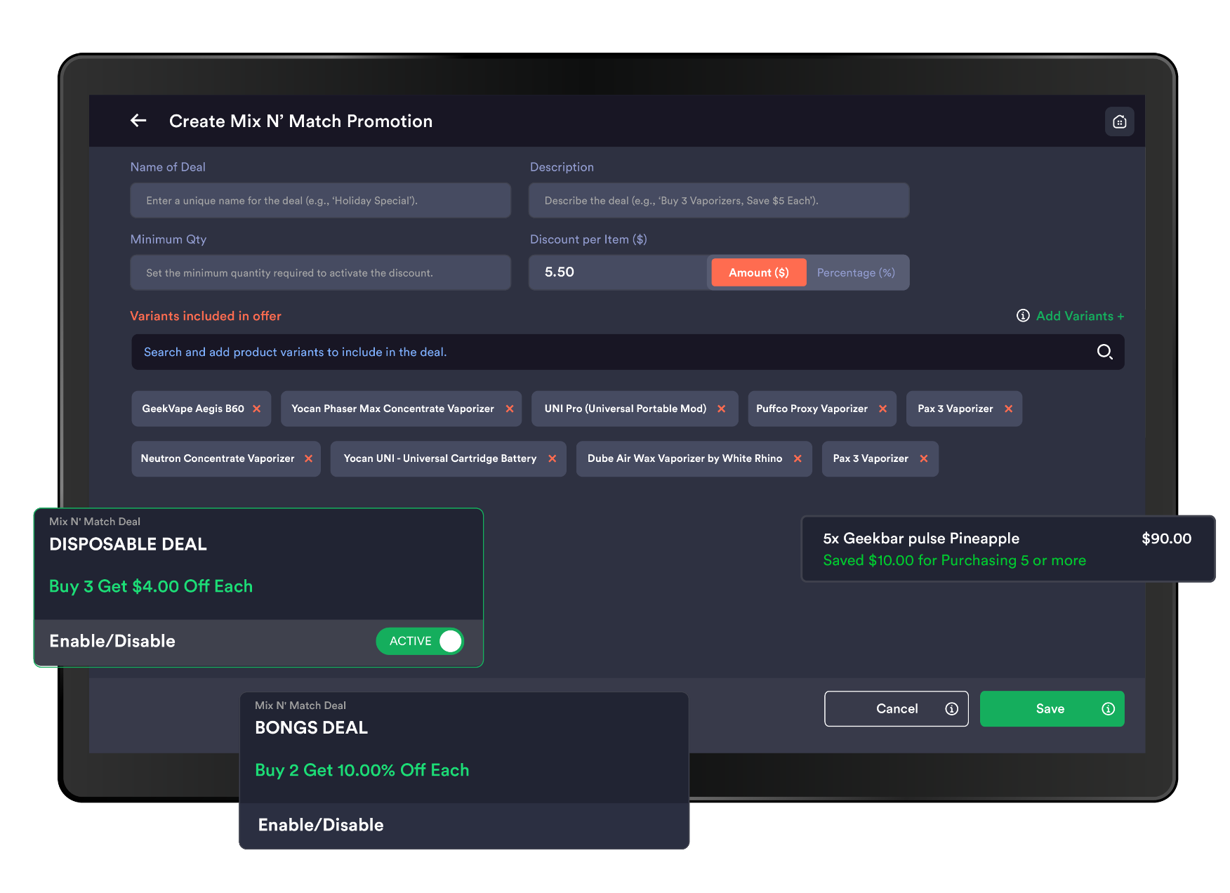 Create attractive deals like “buy 3 get 1 free” or percentage-off bundles easily to boost sales.