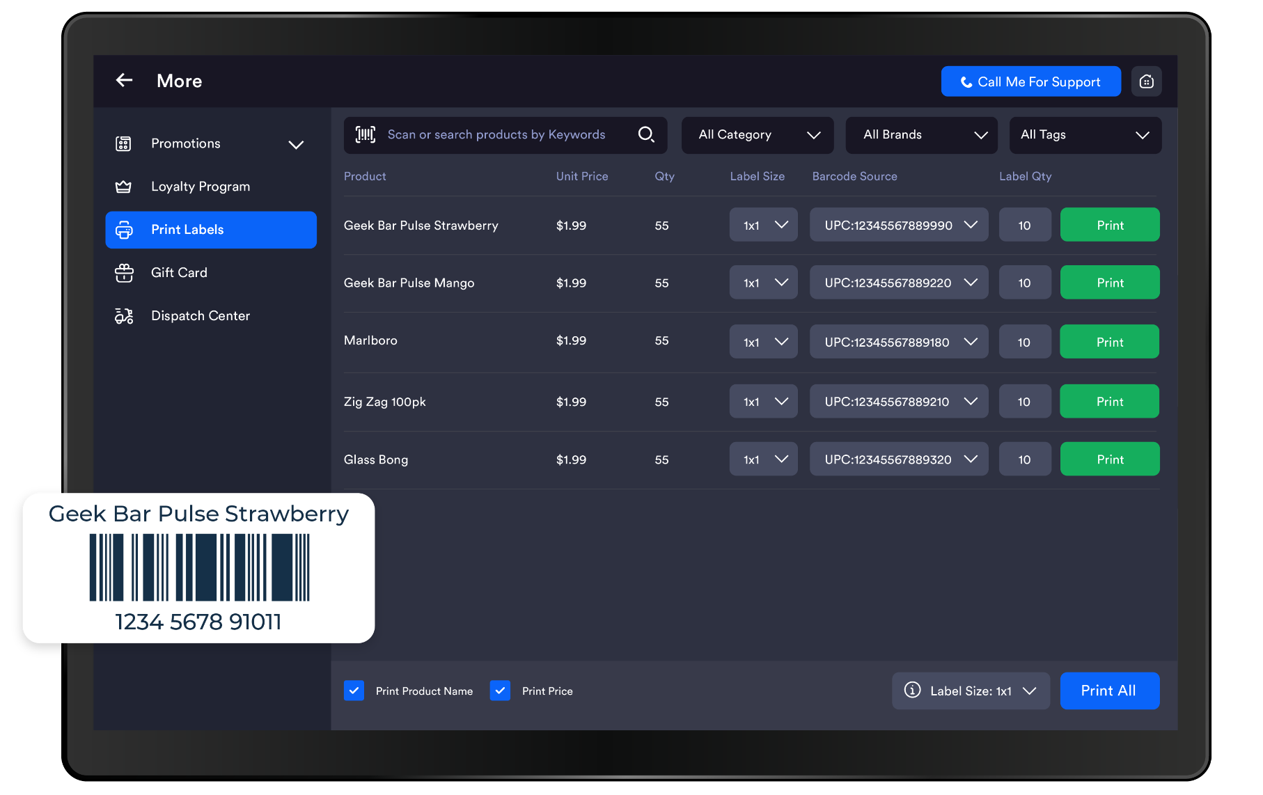 Generate and print barcode labels directly within Quickvee, simplifying product tagging and scanning.