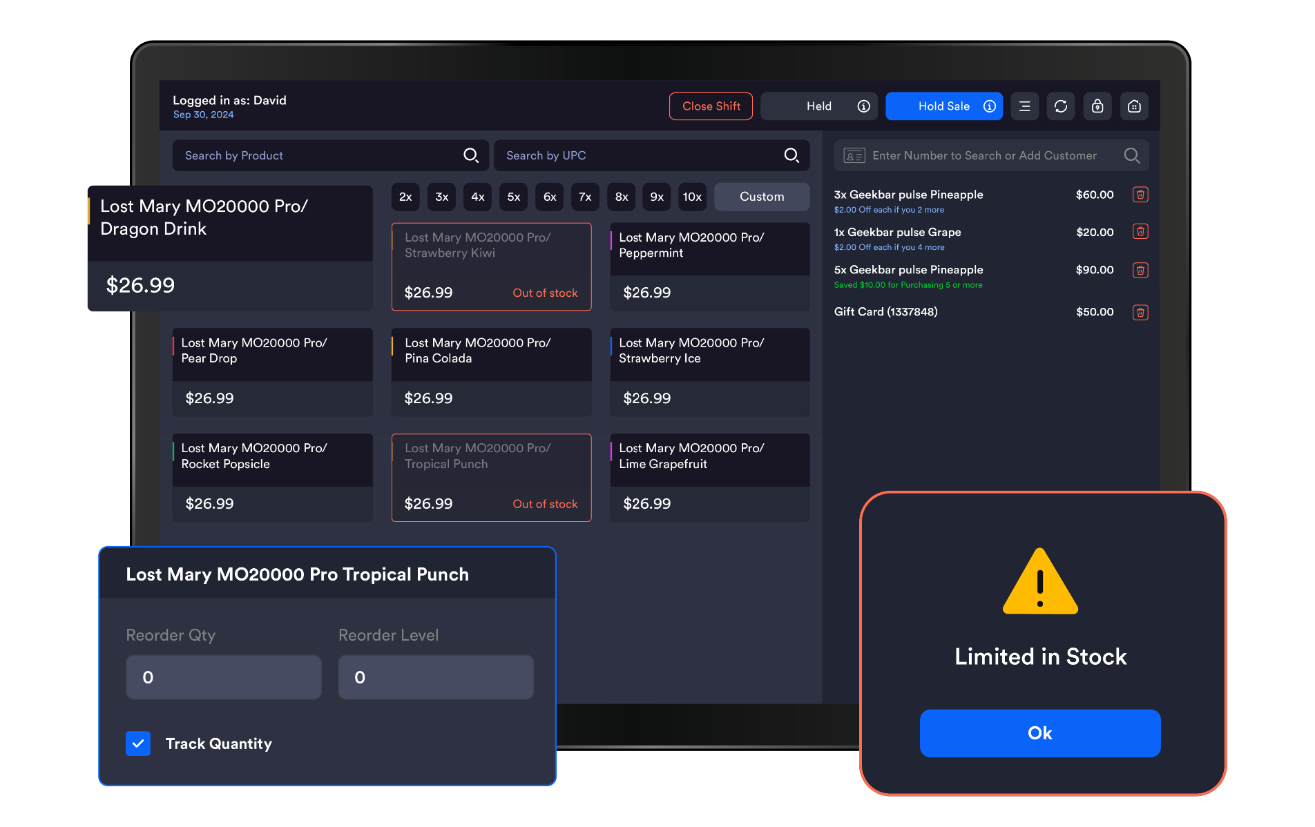 Avoid lost sales with automatic notifications when items are running low, triggering timely restocks.