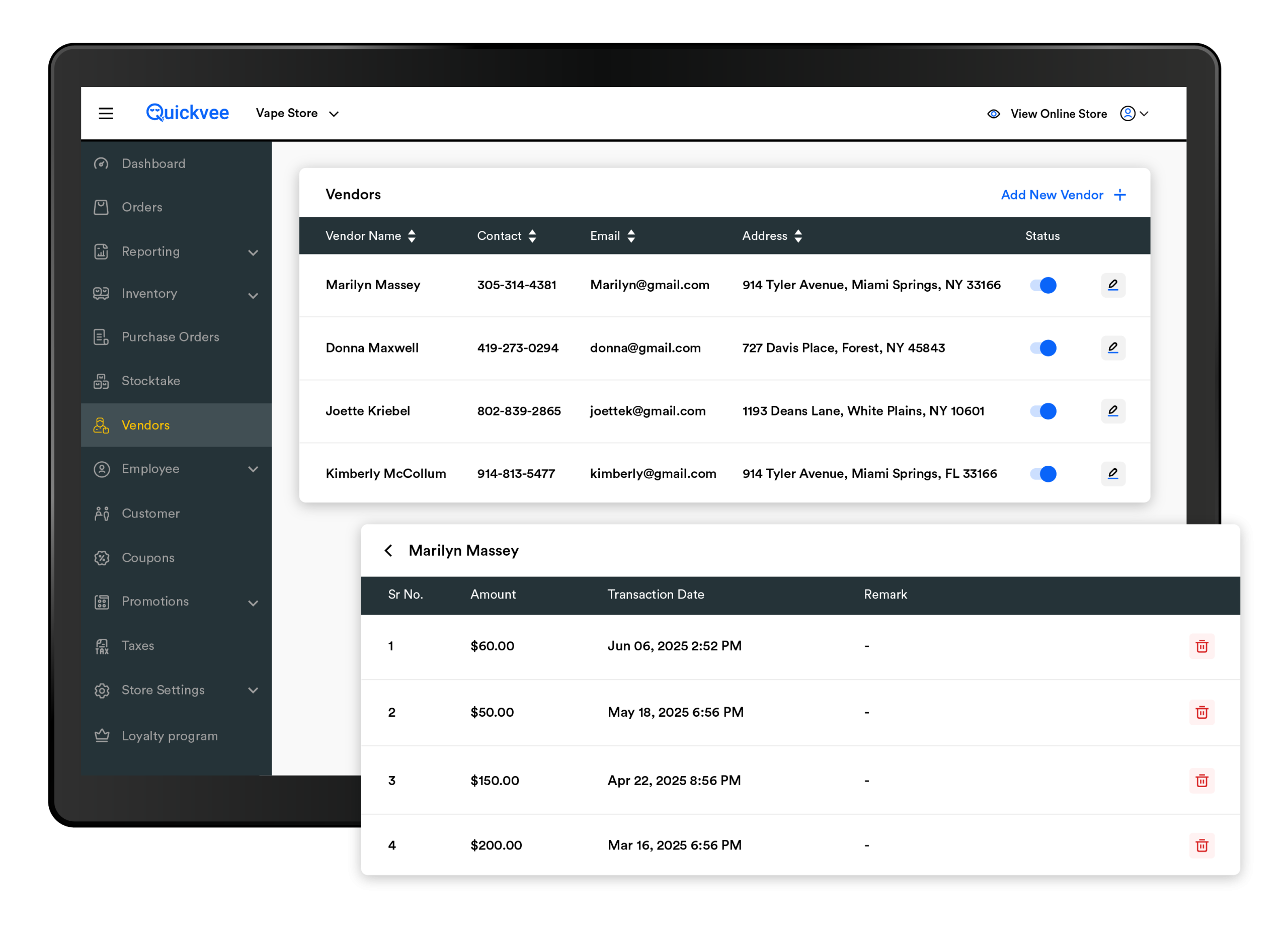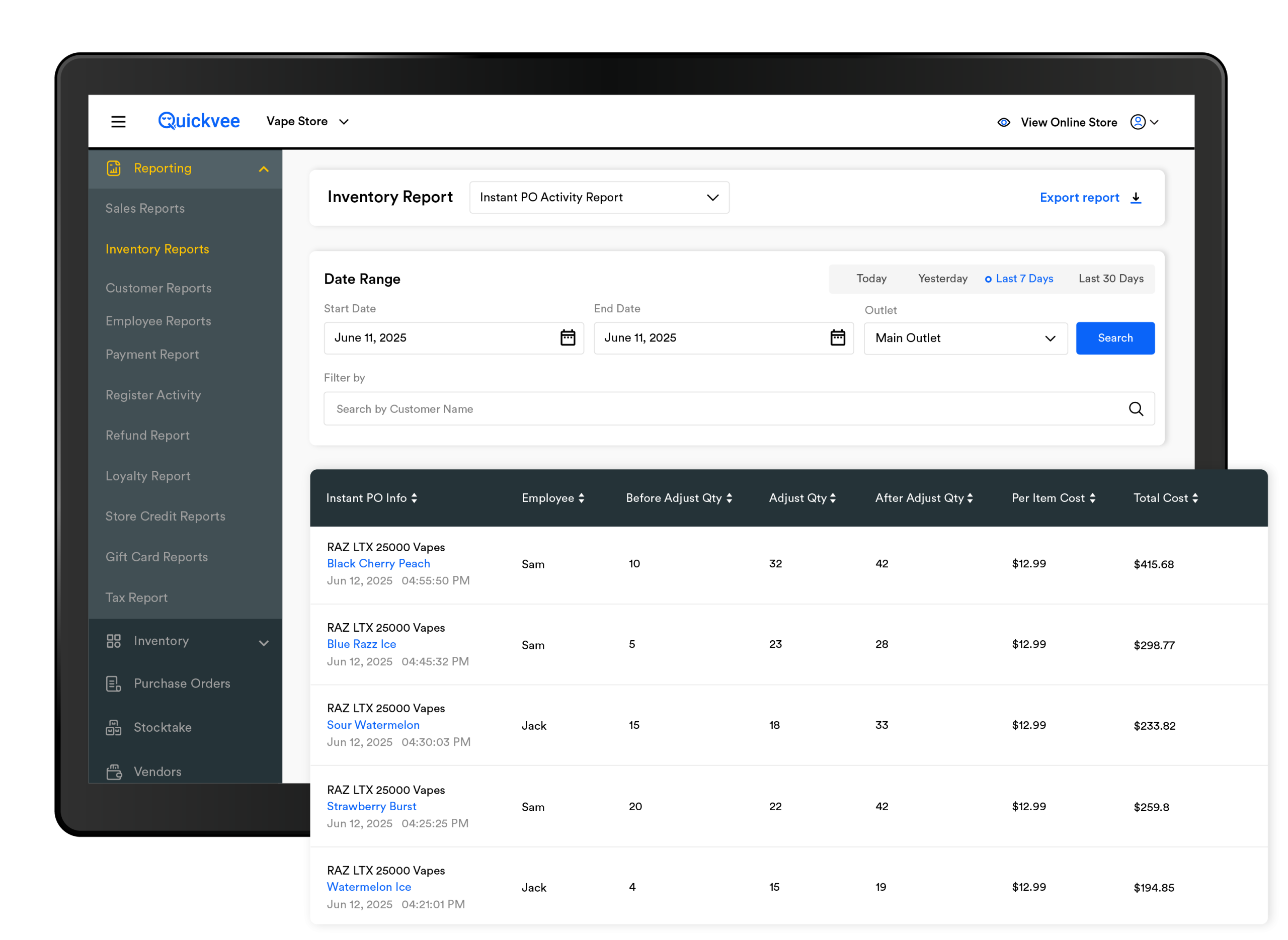 Create and manage purchase orders directly from Quickvee. Easily track shipments and receiving processes.