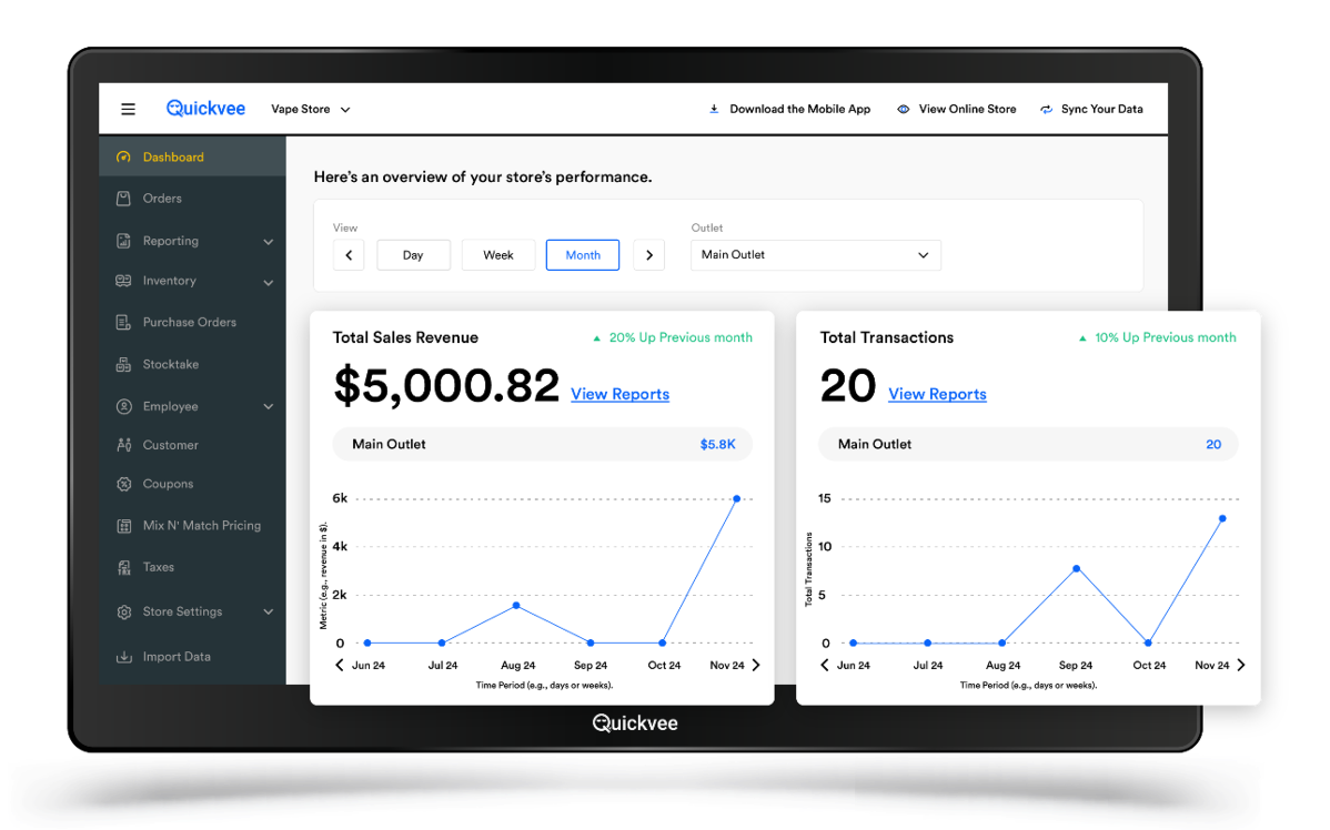 Quickvee’s smoke shop POS system in california provides detailed sales reports to help smoke shop owners better understand their business. Monitor sales patterns, pinpoint busy periods, and understand what your customers prefer. This information enables you to make smart choices for your business, customize your stock, and increase your smoke shop’s earnings.