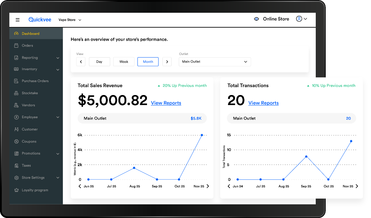 Quickvee introduces the best smoke shop POS system designed to simplify inventory management, streamline transactions, and enhance customer experience. Whether you sell glass, CBD, vapes, or Kratom, our POS software gives your store the tools to grow efficiently — both in-store and online.