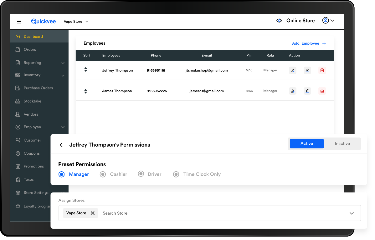 Experience the simplicity of managing your smoke shop team with Quickvee’s smoke shop POS system. Our platform allows effortless creation and editing of staff profiles, ensuring smooth operations and accurate data management in your smoke shop business