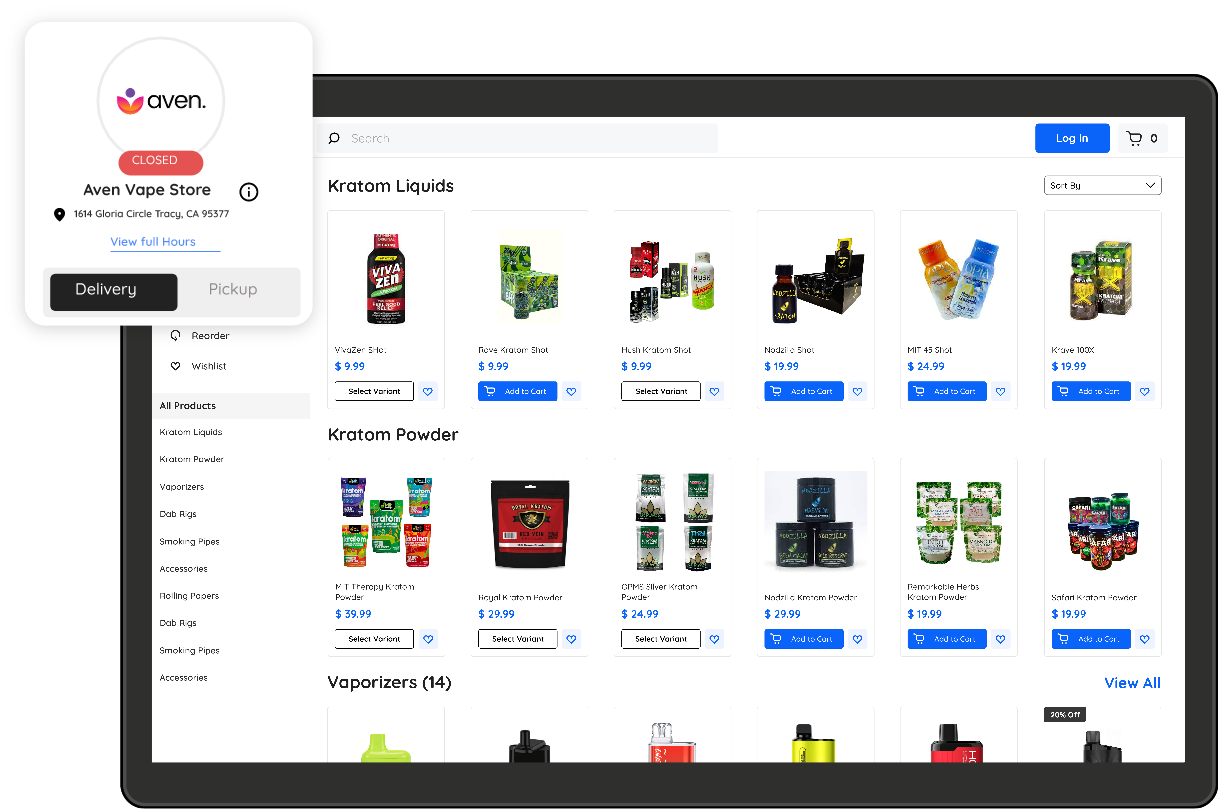 Expand Your Market Reach: Sell Glass, Bongs, Kratom, Delta, CBD, Vapes and Smoking Accessories In-Store and Online for pickup and/or delivery.