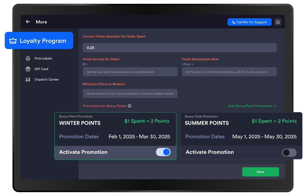Drive repeat business and customer loyalty with custom bonus point events tailored to peak seasons and special dates.