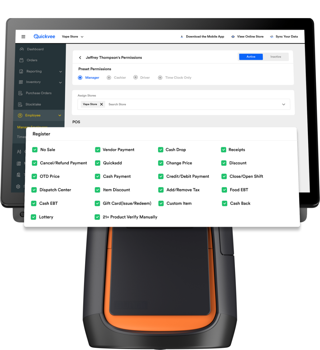 Quickvee’s Vape shop POS software comes fully loaded with everything your business needs: